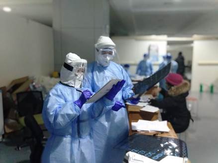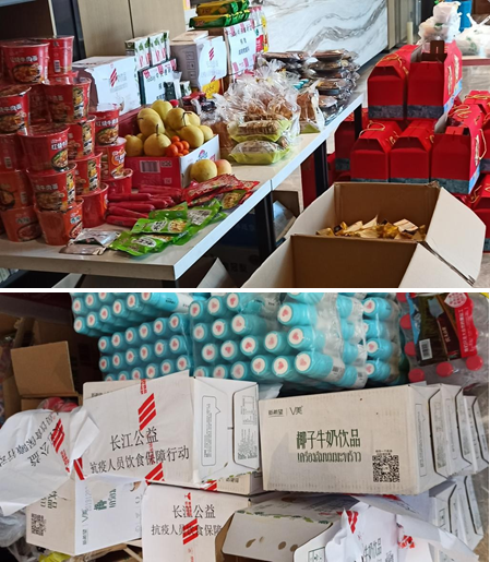 接下来医疗队里发放了足够的羽绒服、保暖内衣等,各类生活用品也日渐丰富起来,尤其在吃方面,武汉地方人员知道南北口味各异,准备了各种小食品,二十四小时大堂桌子上都摆得满满当当,平添了几分温馨,也让我们体会到武汉朋友的心意。