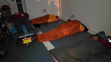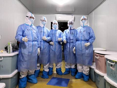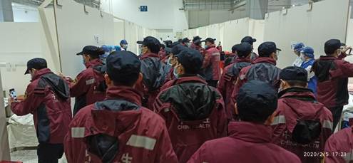 很快几位队员也开始出现恶心呕吐症状,不得不出仓了。幸好,在一筹莫展时终于找到同组一位广医二院的李大哥,五十多岁,参加过SARS等多次医学救援行动,跟着他走了两趟,这才把基本流程弄明白。于是,六个小时就在不停的问诊、记录、解释、安抚中度过,口干舌燥,缺氧,头痛,当接班医生过来时,有一种想要雀跃欢呼的冲动。