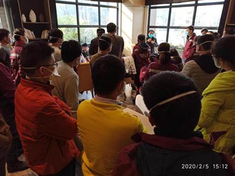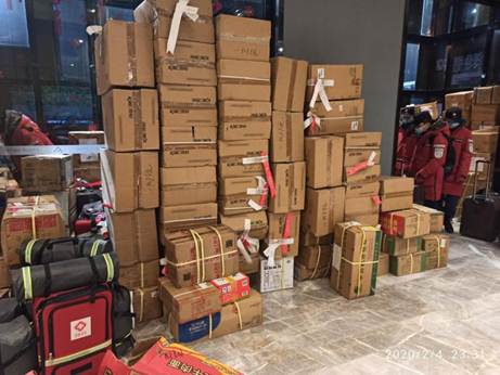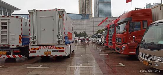2月5日,经过一夜休整,医疗队员大多都将状态调整到最佳,但武汉阴冷干燥的气候还是让海南队员不适,有几位队友出现胃痛、牙痛、腹泻,都是一声不吭拿药吃了接着和大家一起干活,这个节骨眼上,谁都不会退缩。落脚的酒店大堂很快就被各种医疗、生活物资挤占得满满当当。陆路进发的车队也在下午时分赶到,这帮兄弟风餐露宿,整一昼夜靠着两碗泡面充饥,除了半夜里猫在货柜车箱中哆哆嗦嗦躺了3个小时,其他时间没耽误半分钟,马不停蹄把一支庞大的车队从祖国最南端平安护送到武汉,真是不容易。