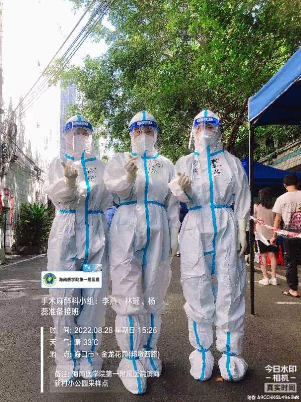 2022年8月4日,地点海南海口。在科里培训的第9天,海南疫情日益严重,海口需要大量的核酸采集人员,我想培训可以推迟,但是疫情不等人,于是主动和林护士长说我在原来单位参加过抗疫,采过核酸,可以出任务。于是,开始了每天采核酸的生活,早上5点半起床接任务,6点半出发去任务点,进行核酸采集,刚开始的时候,没有风扇,33℃的天气,严严实实的防护服,无数次抬起又放下的胳膊,有时候需要坚持4个小时,前几天每天回去都肩膀疼,于是兜里放了一盒布洛芬,疼得忍不了就吃一粒。每天晚上8点多回家是比较早的,有时候会到11点多,有时晚上临时接到任务,也是因为这样的时间点,把我一个恐惧开车的人锻炼成了新手上路,欣慰的是海口人民都很温柔,很少会按喇叭催我。