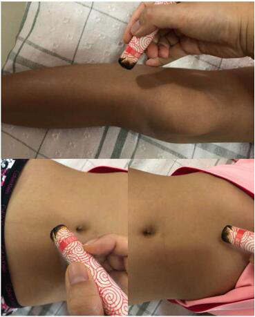 后勤陈丹云老师和工作人员聆听穴位艾灸方法