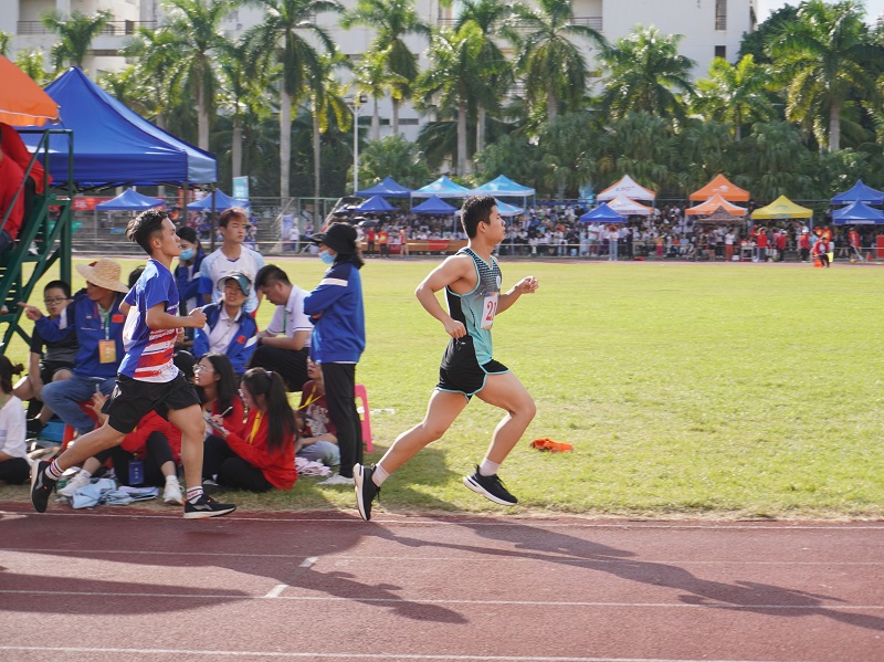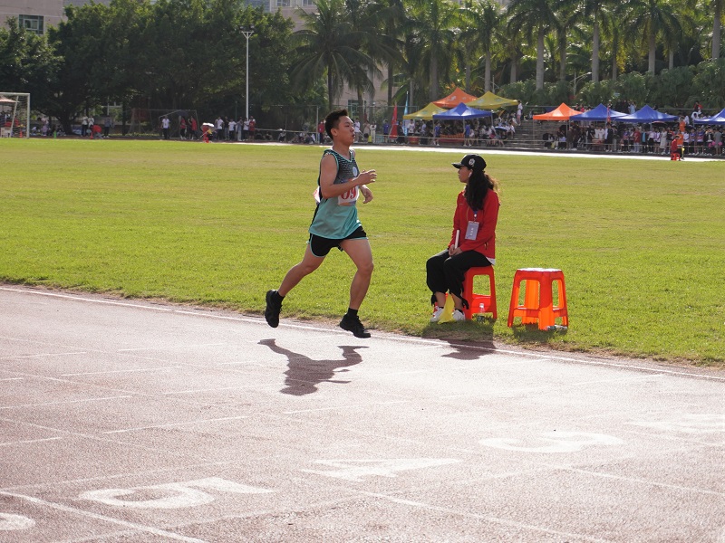经过中午短暂的调整休息之后,下午的比赛继续进行。下午三点的海口依旧烈阳高照,4×400米接力决赛将气氛推入高潮。我们看到姚松、戴何彬、王璐珩、姚宏宾同学在男子4×400米接力决赛中挥洒汗水,气宇轩昂;我们也看到王欣欣、娄瑶瑶、刘琴丽、张艺凡同学在女子4×400米接力决赛中各尽其能,奋勇拼搏。最终我院取得男子4×400米接力第六名、女子4×400米接力第八名的成绩。最后是男子3000米的比赛,孔令天、熊展鹏同学面对男子组里程最长的3000米,毫不畏惧,勇于拼搏,坚持到了最后一刻,赛出了自己的风采。