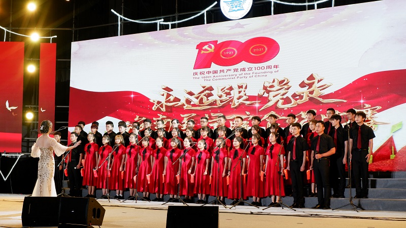 为庆祝中国共产党成立100周年,重温百年峥嵘岁月,传承中国革命精神,推进党史学习教育走深走实,我校于2021年6月25日晚在宋子文体育馆隆重举办了“永远跟党走,