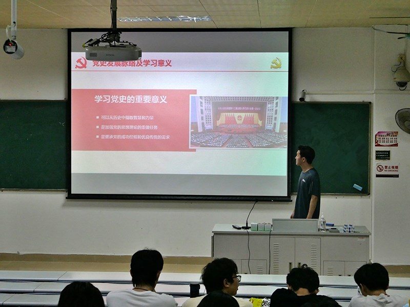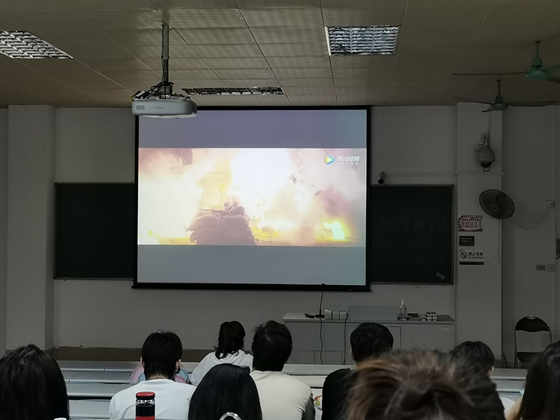 宣讲结束后,观影活动有序开展。本次活动观看的影片选取了“建国三部曲”系列的第三部《建军大业》。该片讲述了1927年中国共产党在江西南昌起义,打响了武装反抗国民党反动派的第一枪,揭开了中国共产党独立领导武装斗争的序幕和创建人民军队的故事。电影里年青的中国共产党人为了国家和民族的命运,在浴血奋战中探索革命的道路,不惧牺牲的伟大精神给每一位现场观影的同学留下了深刻的印象。影片结束后,在场每一位同学都写下了对影片印象最深的场景和金句,在同学们抒发自己内心感触的同时,更深入巩固了本次党史学习教育活动的成果。