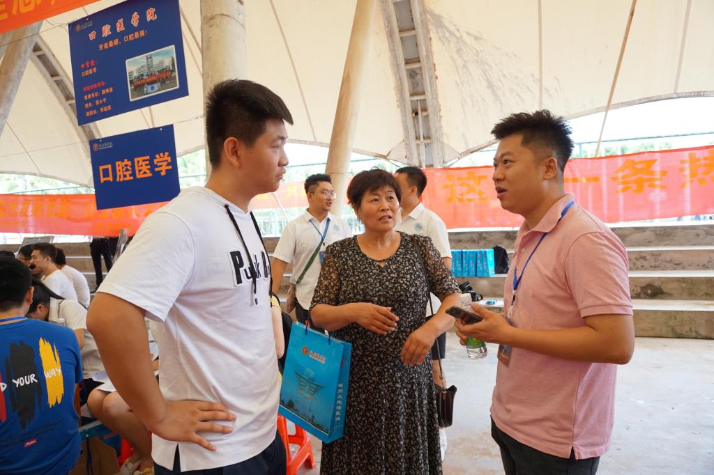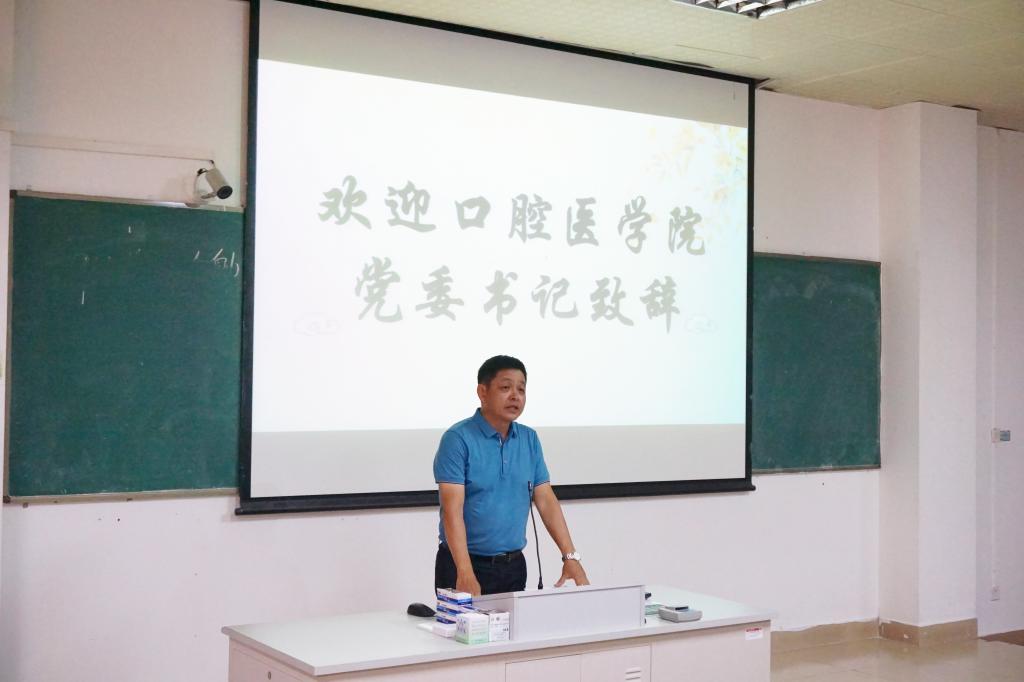 2019年8月24日下午,口腔医学院党委于二教202教室召开了新生家长见面会,并在见面会上邀请了学院党委薛伟波书记,学院院长贺小宁院长、团委书记罗文老师、招就办主任颜剑波老师、研究生办主任司熙老师以及综合办主任陶巍老师到场,会议由2019级新生辅导员、学工办主任李萌杰老师主持。会议开始由李萌杰老师依次介绍各位到场的领导和老师,接着薛伟波书记从学院的历史到目前学院的状况进行了全面的介绍,然后贺小宁院长从时代发展和专业分析给同学们介绍口腔医学专业的发展前景,在两位老师介绍完后,19新生们开始了提问。随后研究生办司熙老师为同学解答了关于考研的解惑,同时罗文老师就作为一名大学生该如何学习给同学们进行了详细的介绍。紧接着颜剑波老师从行业发展趋势这一方面给同学们介绍了当前的就业形势,最后陶巍老师从生活到学习给同学们提出了自己的见解。学院领导和老师们也对新生的到来表示热烈的欢迎和给予殷切的希望。