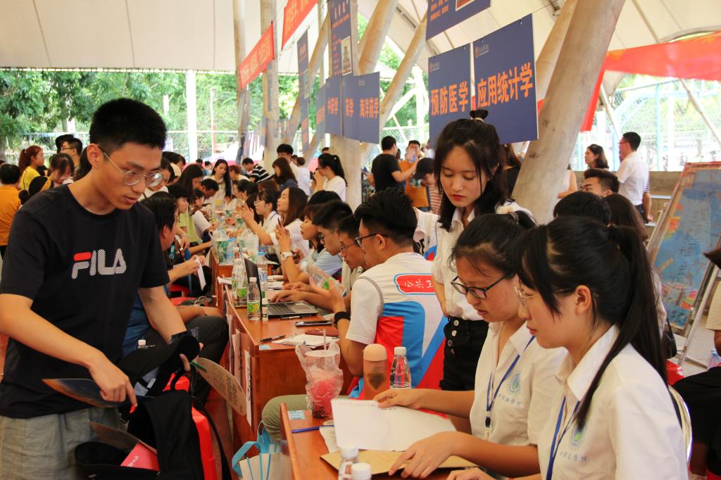 2019年8月24日,口腔医学院迎来了新的同学,新的希望。此次新生接待活动,我院经过充分准备,在风雨操场中帮助新生办理入学手续。为了体现人性化的引导,薛伟波书记和李萌杰老师也亲自来现场指导工作。学生会、青年志愿者协会和团委一共24位同学分早晚全身心的投入新生接待,共接待新生75人,确保了新生接待的顺利进行。在此次迎新工作中,口腔医学院主要分2个小组来进行新生接待工作,分别是资料填写、档案收纳组和档案整理、问题咨询介绍组。新生由自己的直系学姐学长带领前往报到地点,协助办理报到手续。在每位志愿者的辛勤服务下,报到处工作井然有序进行着,新生完成了他们的入学第一步。学生会、青协和团委上下午交替工作,仔细的叮嘱新生填写资料收集档案,耐心地解答种种疑问,真诚的帮助新生。