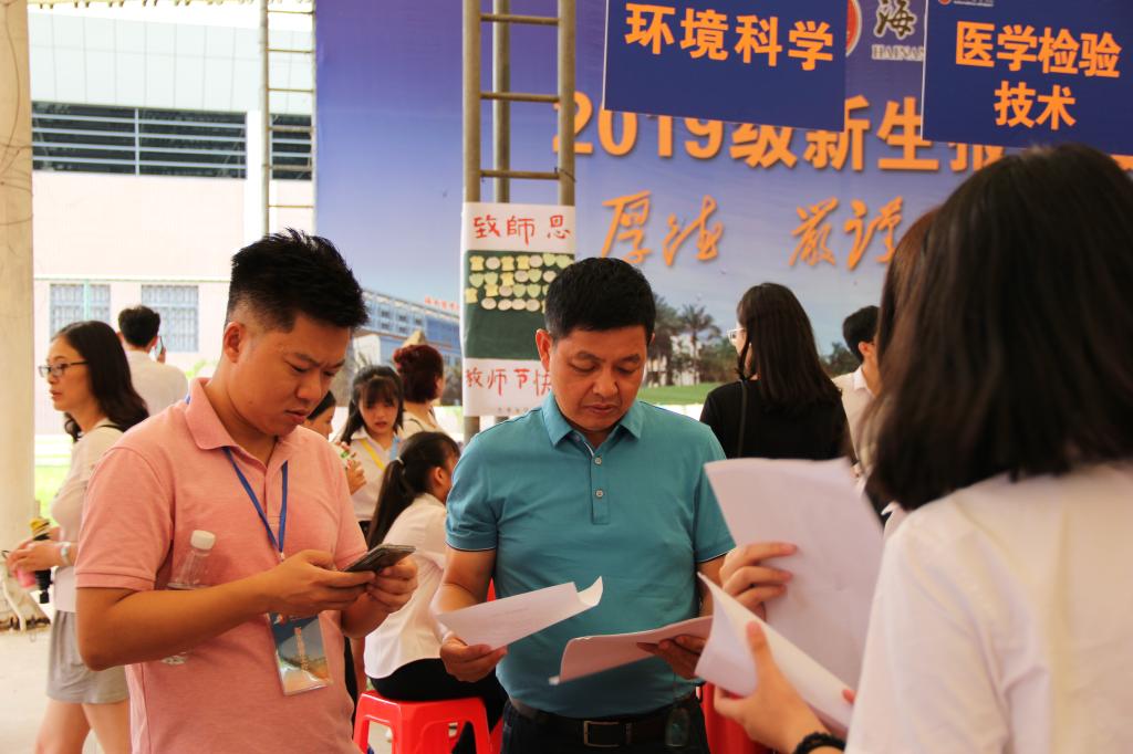 薛伟波书记和李萌杰老师仔细核对新生名单