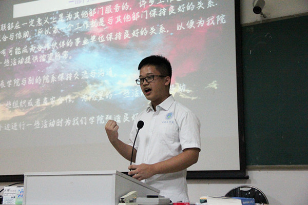 口腔医学院青年志愿者协会外联部部长马煜介绍部门