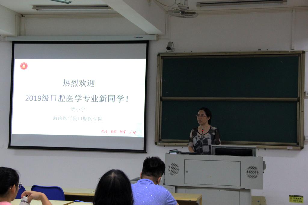 为加强我院新生对口腔医学专业的了解,8月6日晚上,口腔医学院院长贺小宁教授在四教208教室为2019级新生作了一场专业思想教育讲座。贺小宁院长表示作为一名口腔医学生要重视基础医学的学习,不断加强实践操作的训练,才能学有所成。此次大会为新生们展示了我院专业教育和学生工作的风采。贺院长同时也在讲座中以自身多年的经验和丰富的专业知识向19新生们生动地讲述了我校口腔医学专业的特色以及优势。此次讲座是口腔医学院2019级新生们的一次口腔知识盛宴,增强了学生们对专业知识的了解,强化了同学们成为合格口腔医生的从医理念。最后贺小宁院长希望同学们在新的起点上再启征程,再接再厉,愿大学时光不负青春,继续谱写青春的美好篇章。