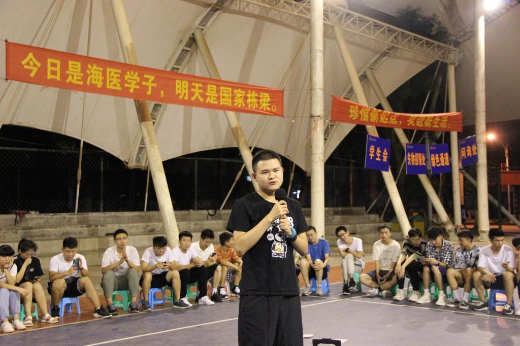 口腔医学院青年志愿者协会会长黄钰乾给同学们介绍协会情况