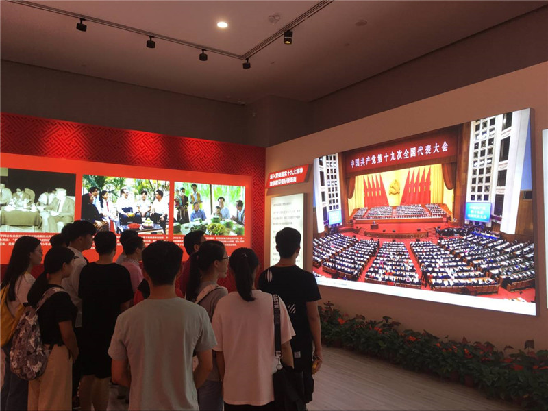 接着,我们着重参观了中国共产党为建设海南,开发海南所做出的努力。习近平总书记“4.13”讲话等发人深省。在中国共产党第十九次全国代表大会的照片前我们陷入了沉思,好像随着照片融入了当时场景。