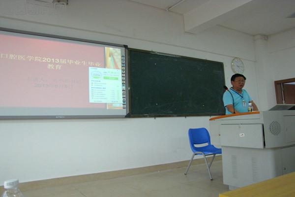 为使我院毕业生安全文明离校,6月5日下午4:00在新址4教301教室开展了2013届毕业生安全文明教育讲座,口腔医学院党总支英小若书记主讲,辅导员王明兴老师主持。