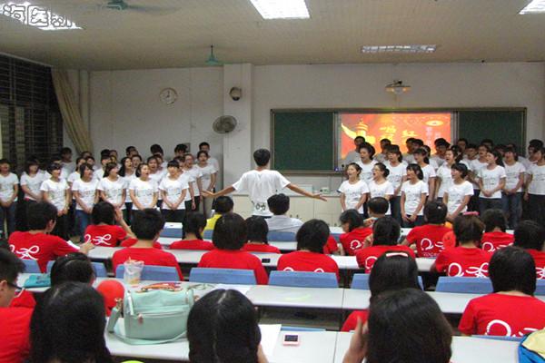 自1921年成立以来,中国共产党走过了91年的风风雨雨,但她仍然年青,风采依旧。喜迎“十八大”的胜利召开,深入学习“十八大”精神。为提高同学们的政治思想觉悟,进一步激发同学们爱党爱国的热情,5月13日晚19点30分,由口腔医学院学生会组织的“盛世光华颂”红歌赛,在2-102顺利举行。此次红歌赛由来自10、11、12三个年级口本的三支代表队参加,口腔医学院党总支英小若书记、林典岳副书记,团委书记王明兴老师和辅导员李伟斯老师担任此次红歌赛的评委。