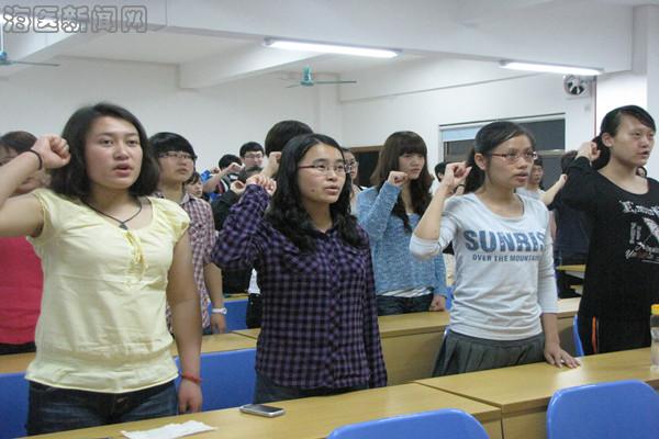 交流会于晚8:00开始,共分为三个环节:第一个环节“必有我师焉”,先由各位学长学姐分别给大家介绍自己的复习和考试经验,以及各个学科的重点和学习方法;第二个环节“答疑,解惑”,由同学们向学长学姐提问,学长学姐来解答,此互动环节气氛活跃,同学们争先恐后地提出对“七科联考”的种种疑问,学长学姐耐心地为大家一一作出详细解答;第三个环节宣誓活动,“目标明确,积极向上,全力以赴,创造辉煌”,振奋人心的誓词回荡在教室的每一个角落,这是同学们对青春、梦想的宣言!