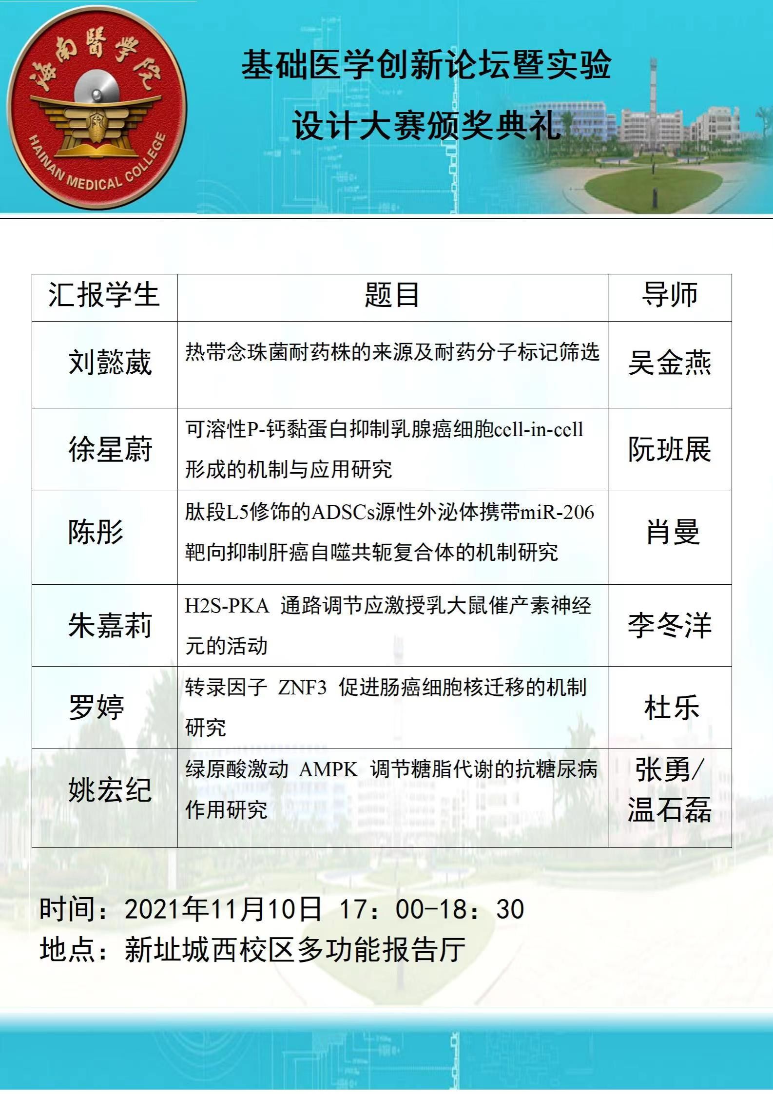 【学术沙龙】第9期:基础医学创新论坛暨实验设计大赛颁奖典礼