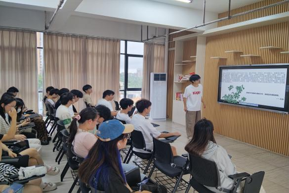 吴琦同学以幽默风趣的语言,深入剖析了《围城》中主人公方鸿渐的“围城心态”,引导在场师生思考现代人面临的困境与选择,激发对人生价值的探讨。