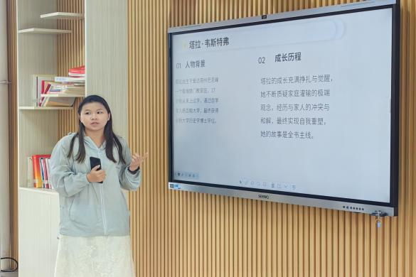 羊俊晓同学深情分享了《你当像鸟飞往你的山》中塔拉·韦斯特沃尔的成长故事,她结合自身经历,动情讲述了知识如何改变命运、教育如何重塑灵魂的震撼力量,传递出青年突破自我、追求真理的坚定信念。