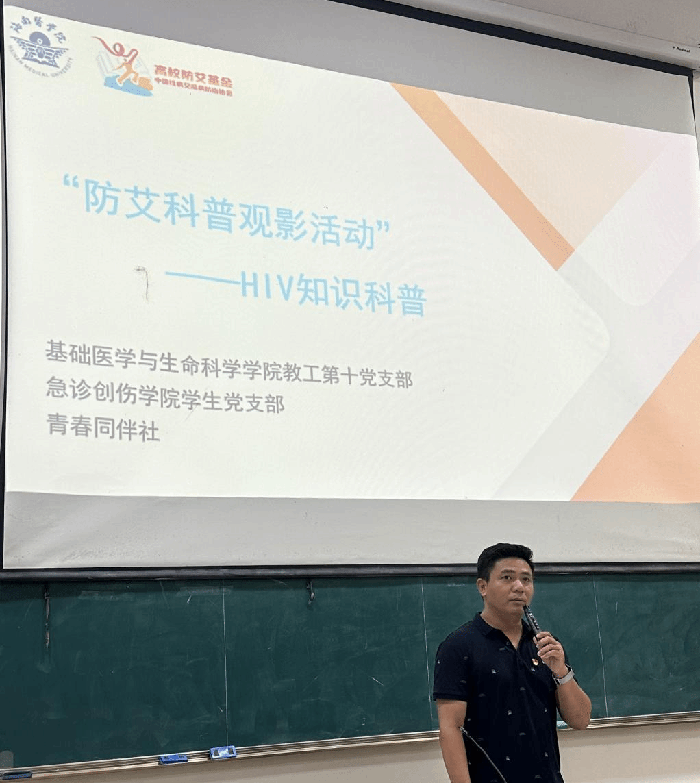 2024年4月19日, 基础医学与生命科学学院教工第十党支部、急诊创伤学院学生党支部和青春同伴社联合在第一教学楼1-104教室开展“防艾科普”观影活动。