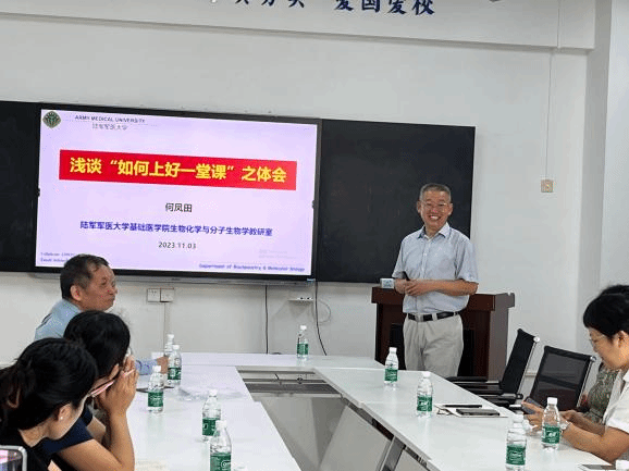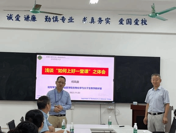 基础医学与生命科学学院于2023年11月3日在综合楼北402成功举办了基础医学与生命科学学院教育教学高质量发展论坛。本次会议由杜冠魁副院长主持,来自陆军军医大学的何凤田教授为大家讲授了“浅谈如何上好一堂课之体会”,基础医学与生命科学学院教师都积极参会,会上,何凤田教授声情并茂的为大家传授上课的技巧,从多方面、多层次、多角度介绍如何成为一名优秀的老师,如何引导学生更高效地学习。会后我院青年教师积极与何教授沟通交流,学习经验,为自己未来的教学之路提供学习经验。