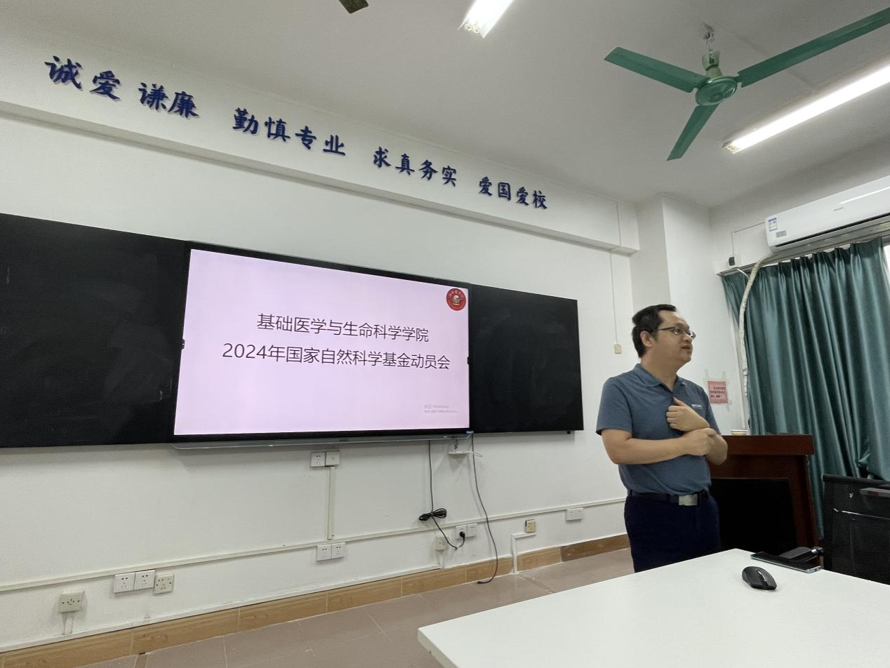 2023年10月17日下午3点,基础医学与生命科学学院在综合楼北402教室召开国家自然科学基金的动员会。本次会议由杜冠魁副院长主持,同时特别邀请了郭青云老师为与会人员作基金项目申报的总结报告和经验分享。