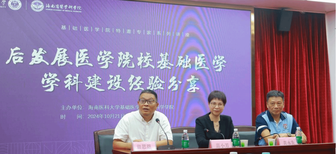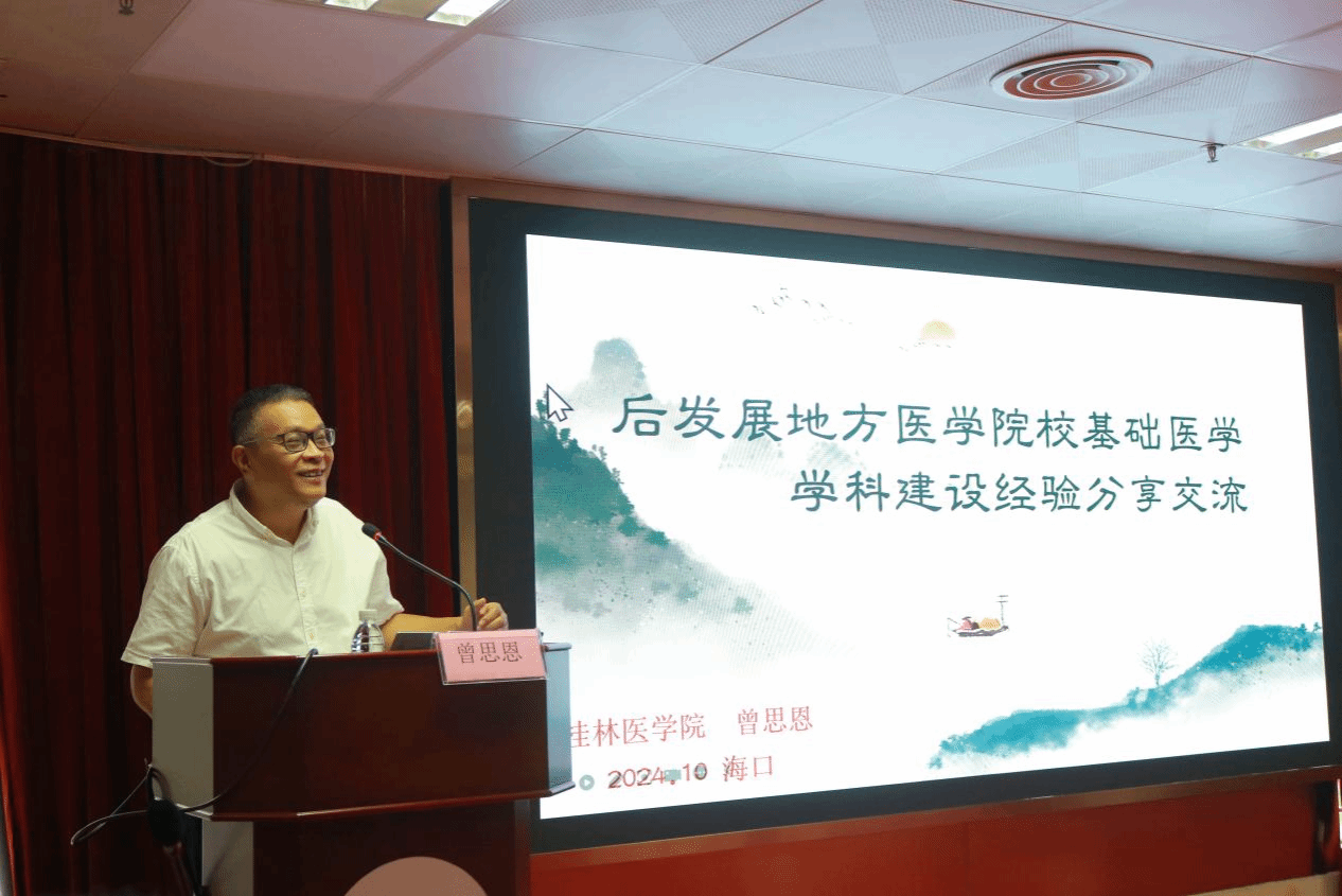 10月21日下午,基础医学与生命科学学院在图书馆7楼学术报告厅成功举办了一场“后发展医学院校基础医学学科建设经验分享会”。会议邀请了温州医科大学龚永生教授、范小芳教授以及桂林医学院病理科主任曾思恩教授作为主讲嘉宾。本次分享会吸引了学院内外众多教师积极参与。会议分别由牛海艳主任、吉丽敏主任主持,杨文君院长、王晗书记、江朝娜副书记、莫燕娜副院长、杜冠魁副院长等学院领导列席了会议。龚永生教授、范小芳教授和曾思恩教授分别就学科建设、课程改革、集体备课以及临床医学专业认证等方面进行了深入细致的讲解。他们结合各自学校的实际情况,分享了宝贵的经验和做法,为参会教师提供了宝贵的借鉴和启示。