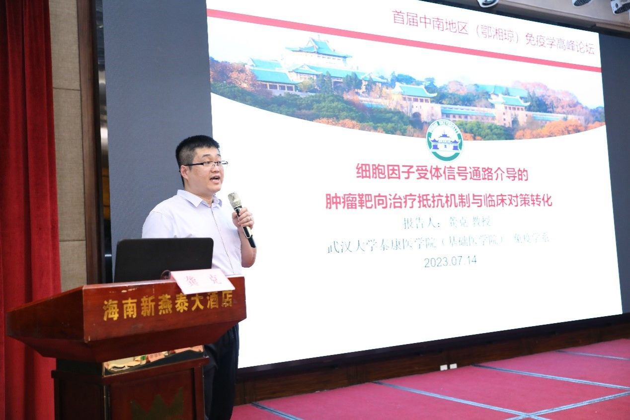 换届大会后举办了首届中南地区(鄂湘琼)免疫学会高峰论坛,清华大学吴励教授,中国医学科学院黄波教授、上海交通大学郑颂国教授,山东大学张利宁教授,中国科学院王盛典教授,四川大学黄灿华教授、北京大学肿瘤医院张志谦教授,中南大学邹义洲教授,华中科技大学王维民、翁秀芳和武宁教授,武汉大学龚克教授,中南大学湘雅二院俞海波教授,重庆医科大学涂小林教授,深圳大学付利教授等知名专家学者先后做精彩主旨发言,来自国内外免疫学界知名专家学者和代表300余人参加本次学术盛会。