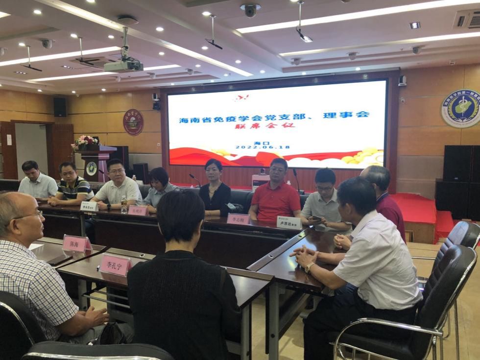 七一前夕,海南省免疫学会召开党支部理事会联席会议喜迎建党101周年。学会党支部书记、理事长王华民、副理事长郑少江、张淑芳、陈海及理事、专委会主委等20余人参加会议。