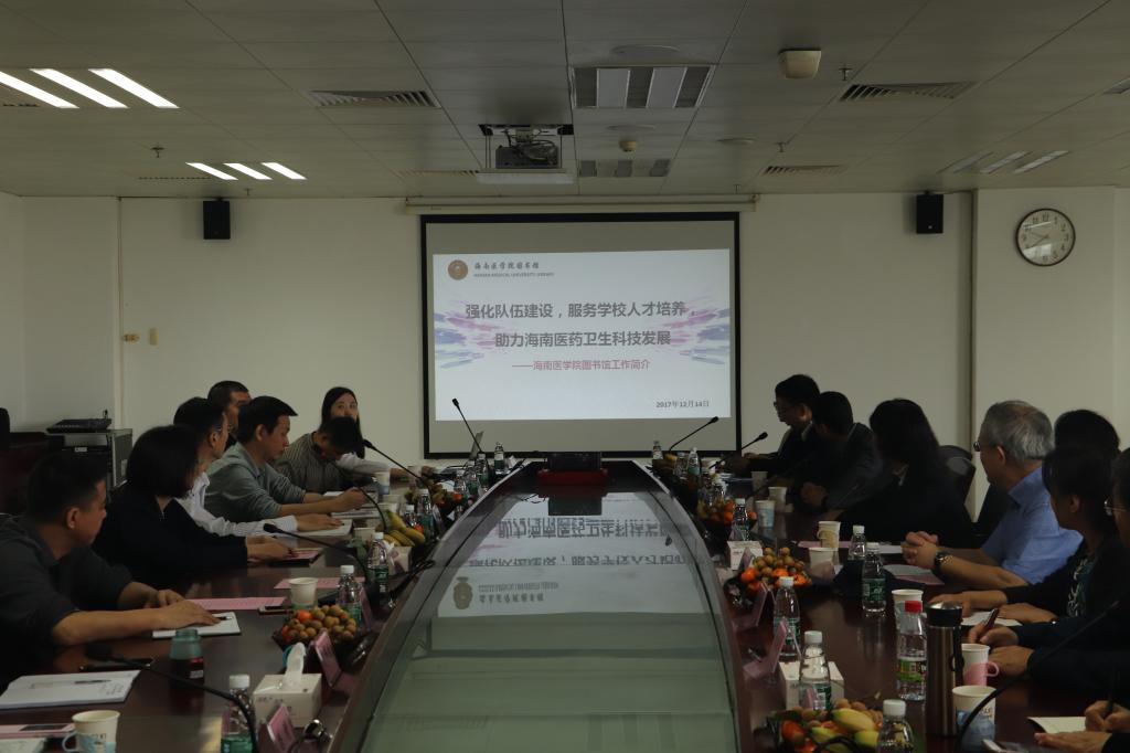 在图书馆七楼会议室,于挽平馆长首先向来宾介绍了我馆基本情况,并侧重就调研组需要重点了解的人才引进、培训工作、信息服务等方面工作进行了详细汇报,同时结合我馆目前发展所遇到的一些瓶颈问题与来访的馆长们进行了探讨。双方就图书馆信息化、参考咨询服务、信息素养教育、资源建设、人员绩效考核等方面工作进行了深入的探讨和交流,并对今后馆际互借、人才交流等方面可能开展的合作交换了意见。