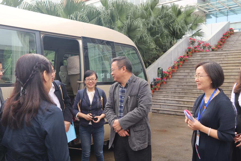 座谈会结束后,调研组成员在于馆长的陪同下参观了图书馆,南药黎药图片展和大学生文化墙活动吸引了来访客人驻足观看。