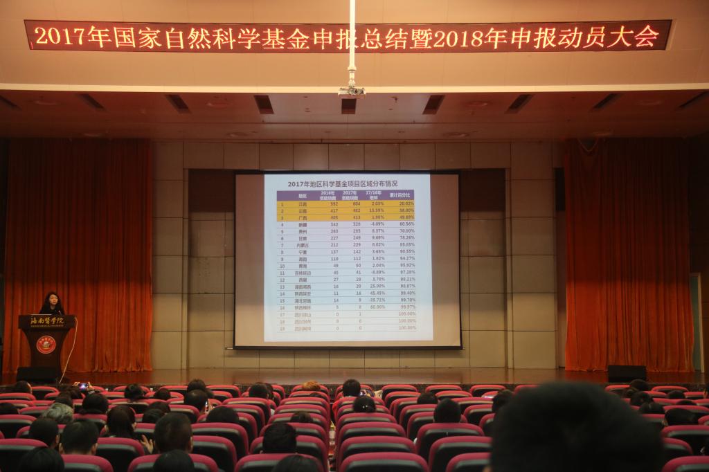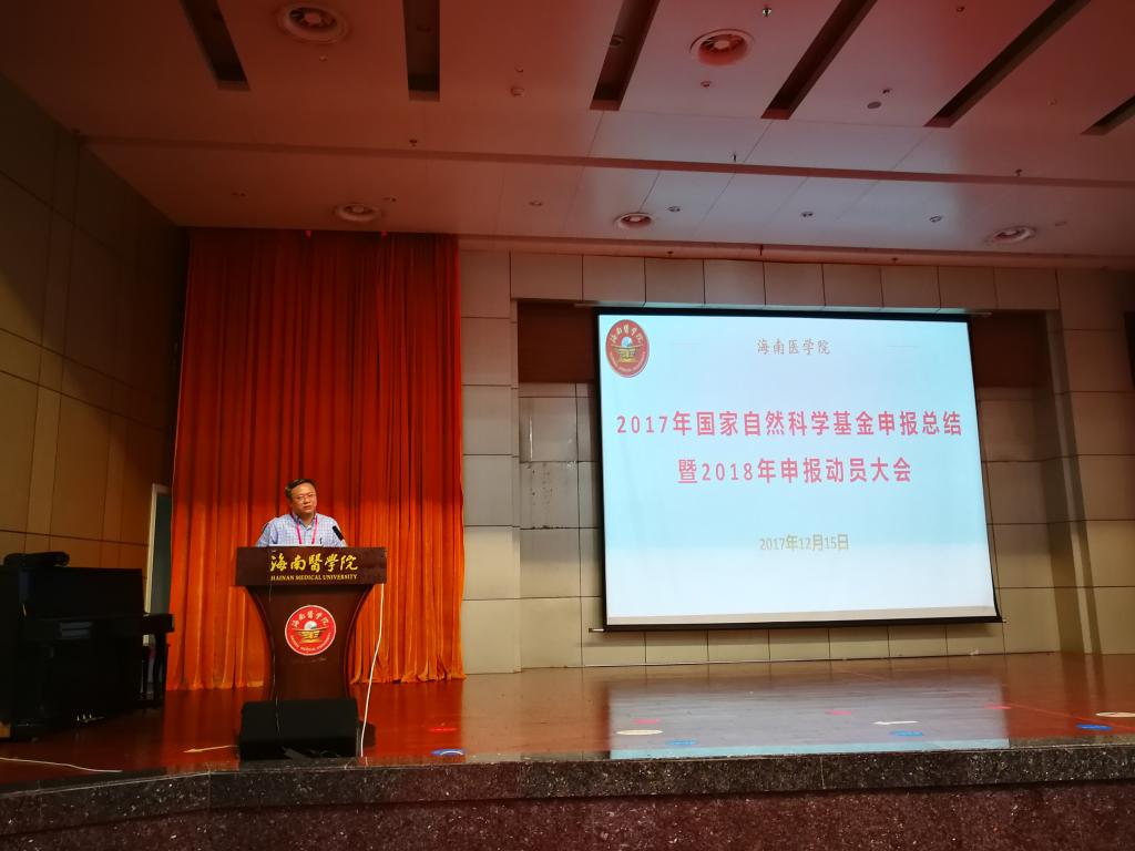 杨俊校长先做动员讲话,强调了科学研究在高校建设和发展中的重要地位,充分肯定了我校在近几年国家自然科学基金申报和立项工作中取得的成绩,对全校科技工作者的辛勤努力表示感谢,同时指出了我校的不足之处,希望全校科技工作者为了学校的学科建设和转型升级再接再厉,在2018年度国家自然科学基金申报和立项工作中取得更大突破,为早日实现海医梦添砖加瓦。