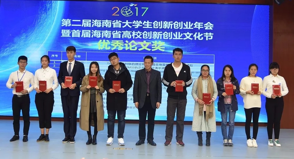 第二届海南省大学生创新创业年会入选学术交流论文158篇,展示大学生创新创业项目242个,向社会推介优秀创业项目24个。我校共23项项目参加大学生创新创业项目成果展,2项进入答辩,36项论文参加大学生学术交流会,7项进入答辩,《早期肺癌CT图像的计算机辅助诊断》和《基于Android系统的院外综合控糖APP》获评最受欢迎展示项目,戴文彪等同学参与的项目获得优秀论文奖。
