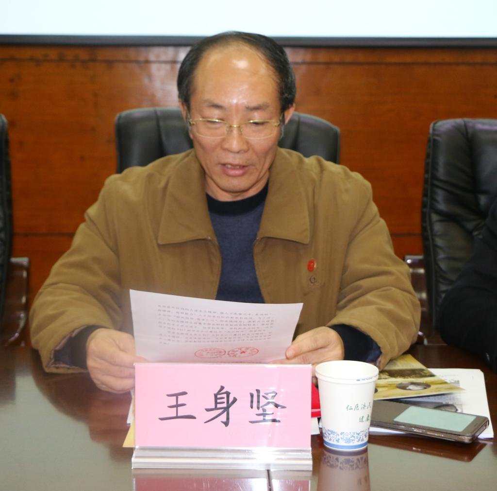 王身坚部长宣读表彰江蕙仪同学的文件