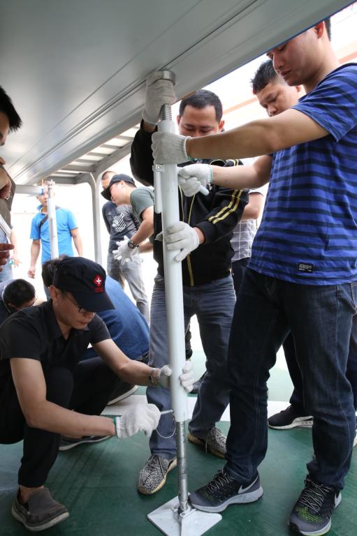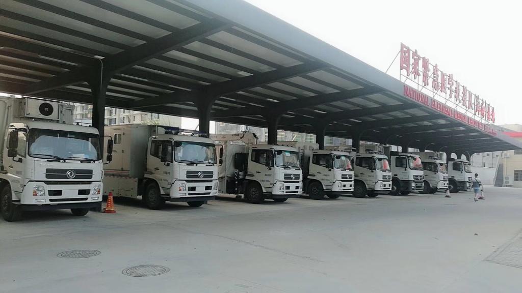 本次演练内容主要涉及各种车辆(手术车、重症监护车、药品器械车、通讯指挥车、宿营车等九辆车)结构组成、功能介绍和车辆整体布局;方舱展收、支撑腿操作要点讲解;舱内配电系统、上装设备操作培训;帐篷与车辆对接实地展收培训;各类通讯设备操作培训以及现场进行箱组化模块演练等。