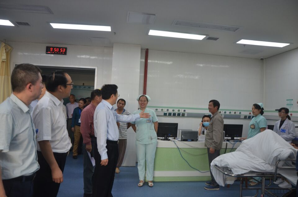 调研组先后到我校校本部、第二附属医院,实地考察了临床技能培训中心、急诊创伤学院、全员应急救护培训室、水上急救教育中心、救援基地中心医院等卫生应急建设情况。随后在第二附属医院召开了座谈会。杨俊院长主持座谈会并代表学校致欢迎词。吕传柱书记向许树强主任一行作了详细的汇报,介绍学校在卫生应急方面开展工作情况,并就海上紧急医学救援体系(南海)建设的现状、构想和建议、应急机制和能力培养等方面作了汇报。并表示将在国家卫健委卫生应急办和省卫生计生委的积极指导下,举全校之力、实行军民融合、统筹各方力量,为国家海上紧急医学救援基地(南海)项目的建设贡献海医应有之力。
