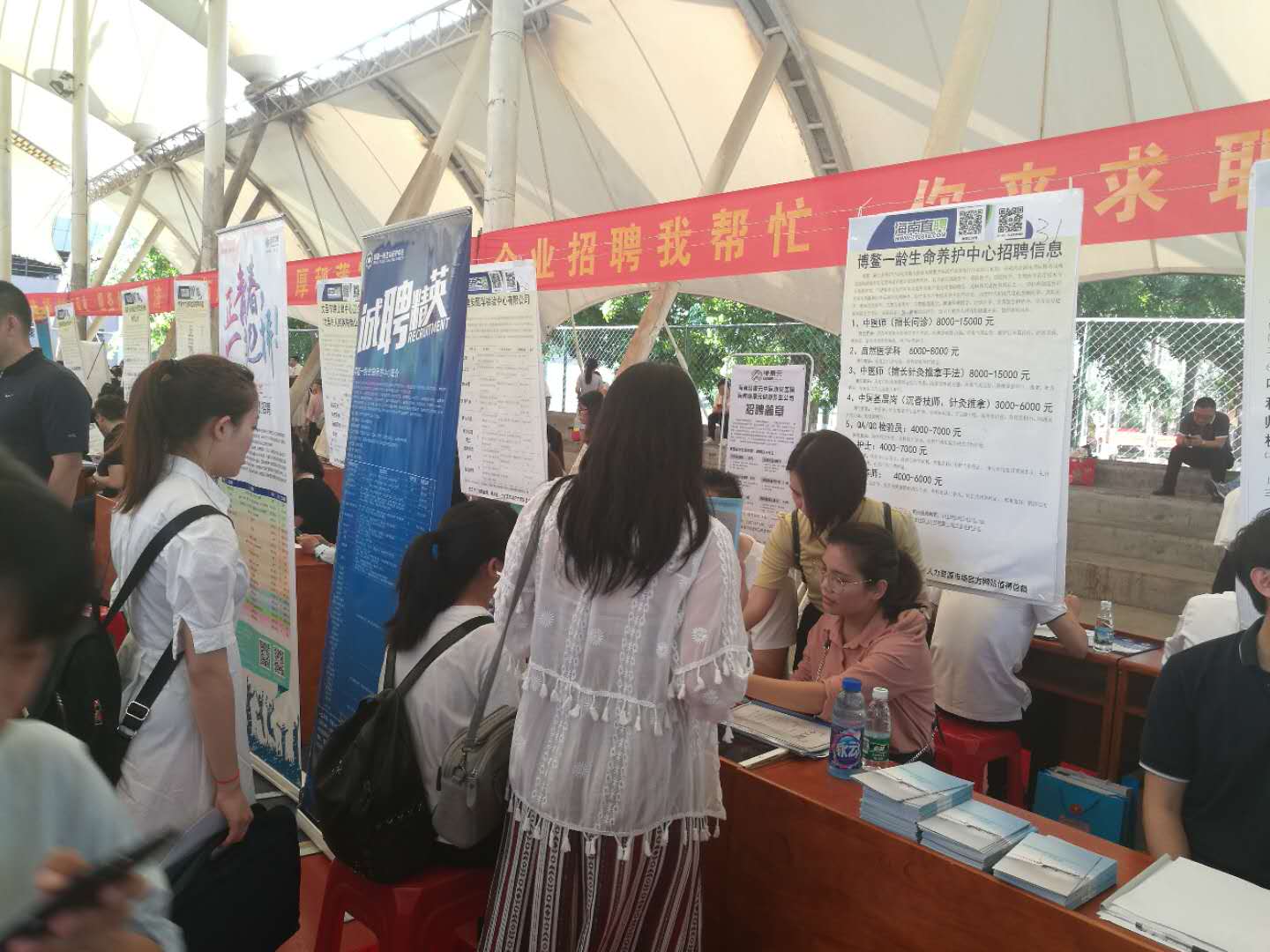 尽管烈日炎炎,但风雨操场依然人头攒动。毕业生们带着精心准备的简历和自荐书,穿梭于人流之中,主动与招聘单位交流,寻求适合的工作岗位。用人单位也详细介绍相应的工作要求、条件、待遇等情况,积极招揽人才。此次招聘单位囊括各级医学、医药相关企业等单位。本次校园招聘会用人单位共收到收到简历1598份,初步达成就业意向400余人,当场录用90人。包括博鳌银丰康养国际医院、中国干细胞集团海南博鳌附属干细胞医院、博鳌恒大国际医院、博鳌一龄生命养护中心、海南博鳌元合医院等在内的博鳌乐城国际医疗旅游先行区多家单位前来招贤纳士,引来众多学生的关注。