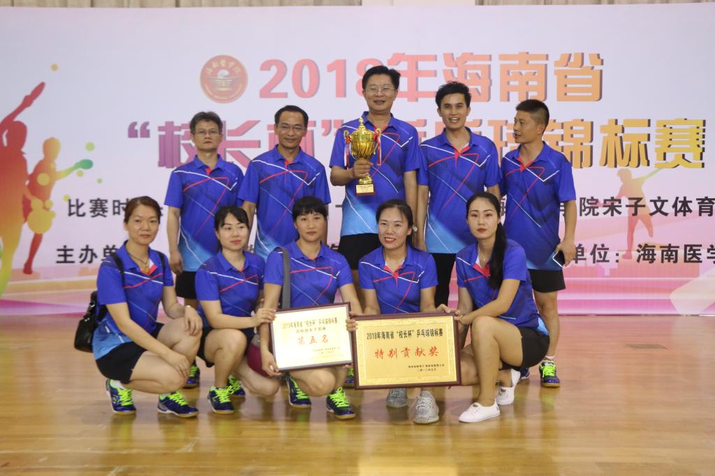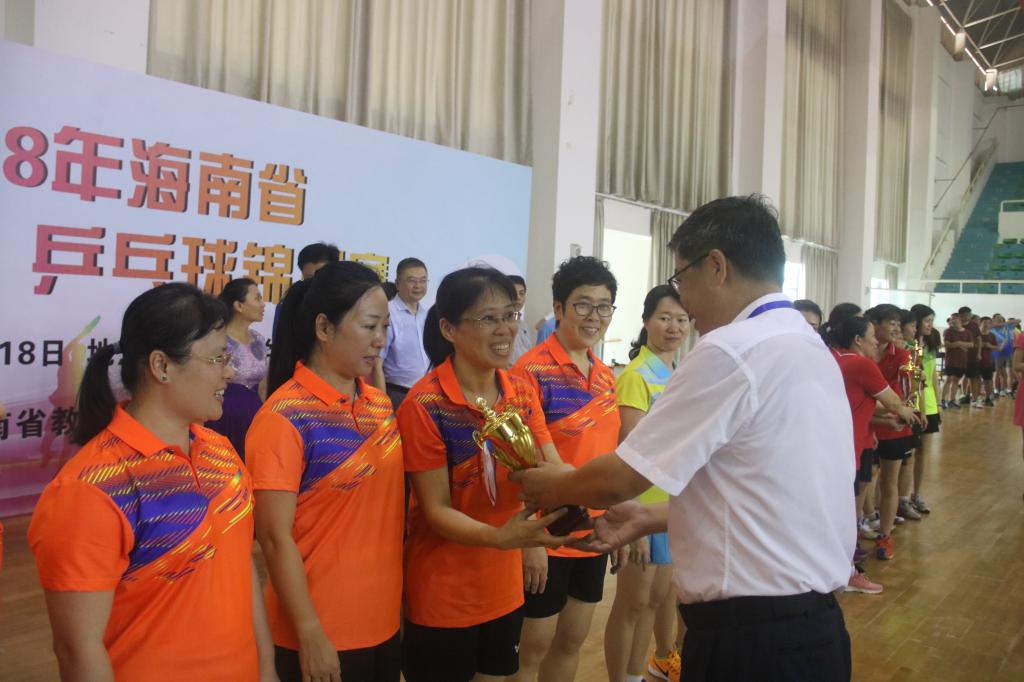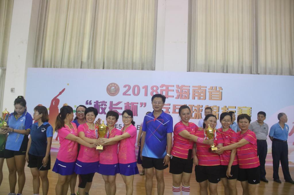 、女子团体B组海南经贸职业技术学院、男子团体C组海南省商业学校、女子团体C组海南省机电工程学校、男子团体D组海南中学、女子团体D组海南省农垦中学;单打赛中获得冠军的是男子单打E组澄迈县教科局工联会林阳、女子单打E组定安县教育工会孙冬梅、男子单打F组定安县教育工会韦培卿、男子单打G组海口市教育工会李飚,女子单打G组海口市教育工会谢瑞琼。我校还荣获特别贡献奖。