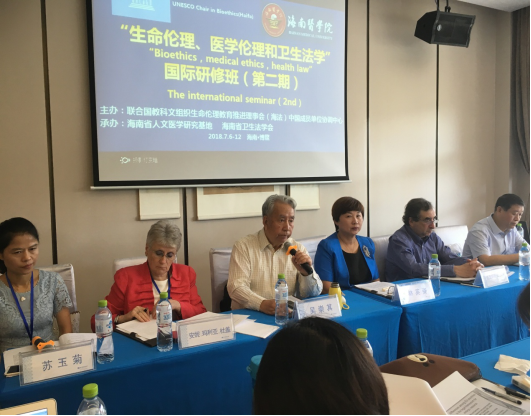 第二期“生命伦理、医学伦理和卫生法学”国际研修班于2018年7月7日,在海南省琼海市博鳌镇温德姆酒店隆重开班。本次研修班由联合国教科文组织生命伦理教育推进理事会中国成员单位协调中心(中心工作机构设在