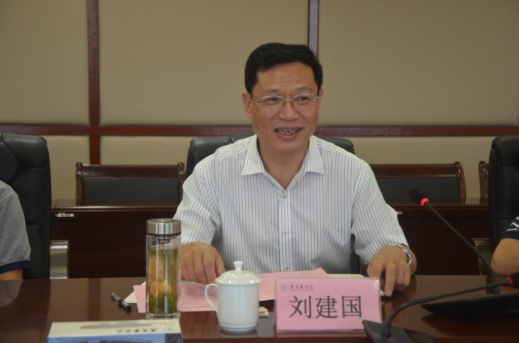 遵义医学院党委副书记刘建国携党委行政办公室主任郭宇亮、党委宣传部部长罗扬、人事处处长李荣远、发展规划处副处长覃晓龙、国有资产管理处副处长周光润及研究生院副院长徐林等,在遵医新蒲校区行政楼五楼2号会议室会见我校考察团一行,双方进行了深入的座谈交流。