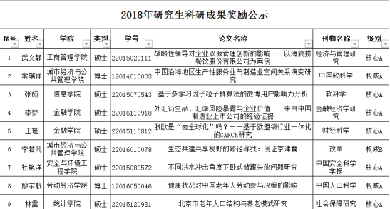 近日,我校管理学院廖宇航副教授的论文《健康状况对中国老年人劳动参与决策的影响》发表在人口学权威期刊《中国人口科学》,并获得其博士在读学校首都经济贸易大学2018年度研究生科研成果最高等级的奖励(奖励公示文件:http://yjs.cueb.edu.cn/cxsj/tzgg/99250.htm)。首都经济贸易大学针对硕士和博士科研论文设立专项奖励基金,共分为权威A、权威B、核心A和核心B四个等级,2018年度获得权威A奖励的研究生科研论文仅有2篇。