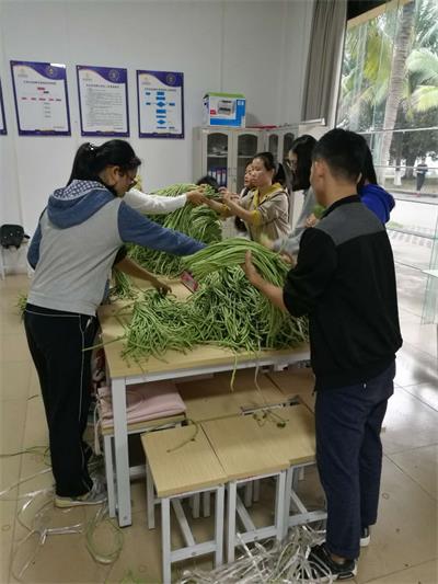 海南学创大健康服务有限公司工作人员分拣豇豆