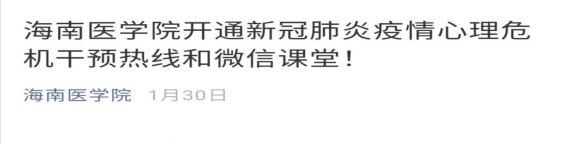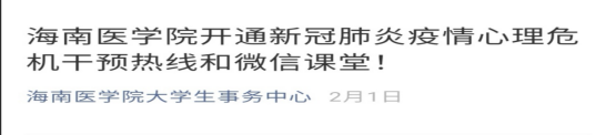 作为海南省唯一一所省属公办普通高等医学院校,积极响应党中央、国务院以及省政府的号召,积极投入到抗击病毒的战斗中,除了公共卫生防护部署之外,还迅速成立了疫情心理危机干预工作小组,开展心理防护相关工作,为社会公众和学校师生的心理健康筑起了一道保护伞。