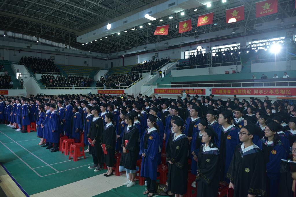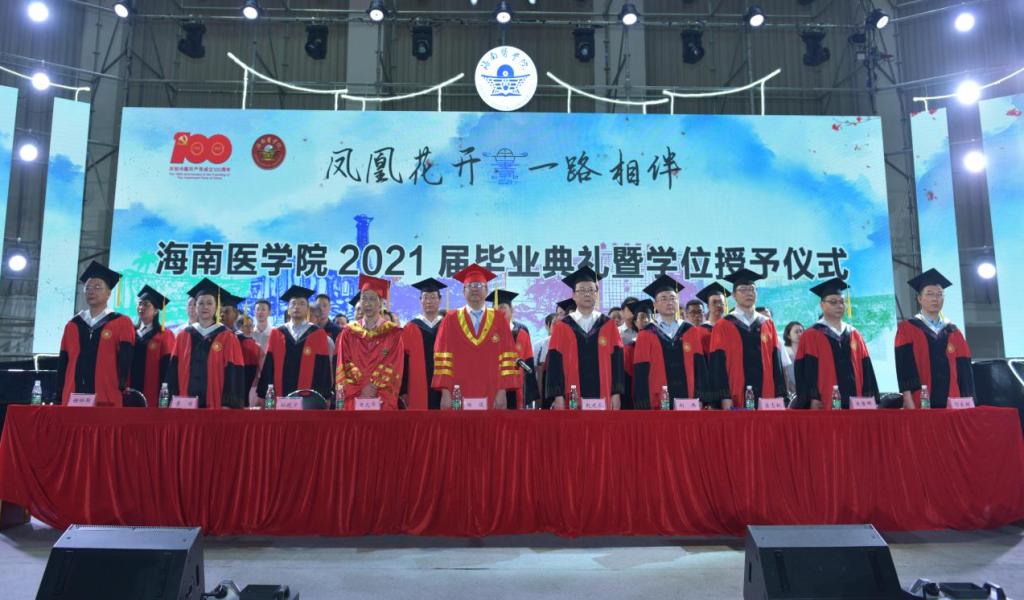 6月24日上午,我校在宋子文体育馆为2021届的毕业生们举行了一场别开生面而又隆重的毕业典礼。学校党委副书记、校长杨俊,学校党委副书记、海南省人民医院(附属海南医院)党委书记赵建农,副校长黄元华、向伟、吕志跃,研究生院院长王慷慨,院长办公室、党委宣传部、教务处、学生工作处等主要部门负责人,学位委员会委员,各二级学院党政领导,各毕业班辅导员及毕业生代表等出席参加此次典礼。毕业典礼由党委委员、副校长孙晓宁主持。