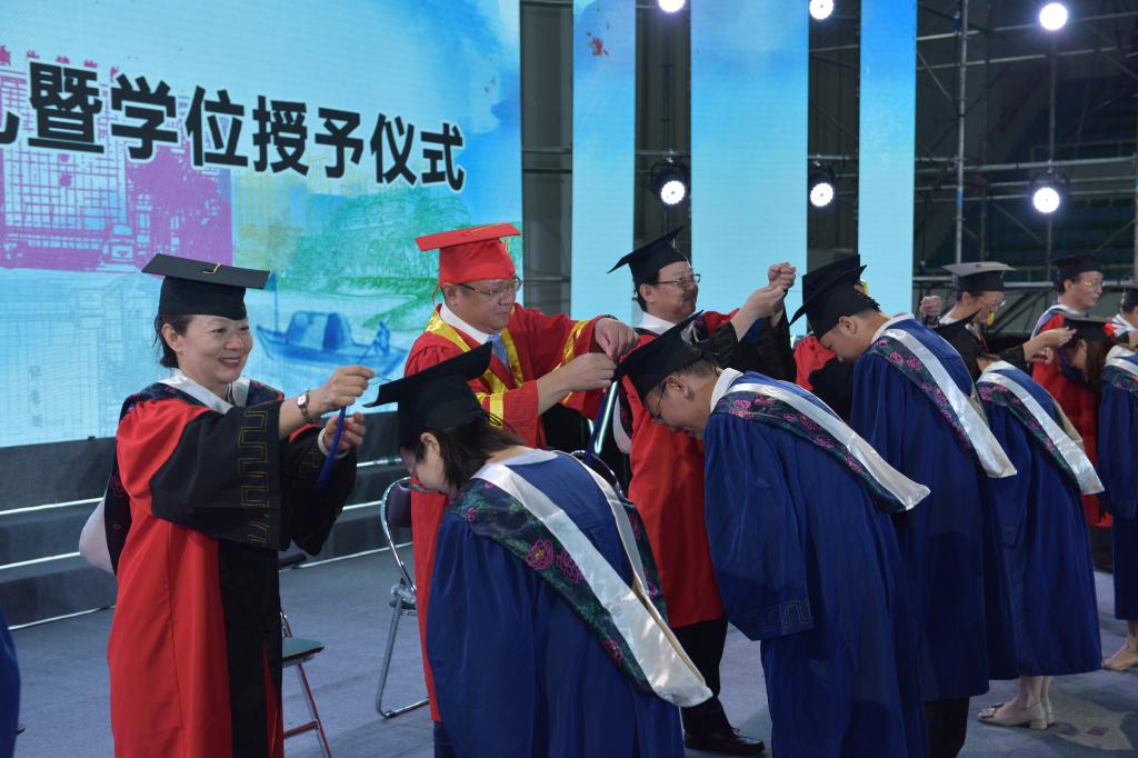 学位委员会委员为获得硕士、学士学位的学生拨穗