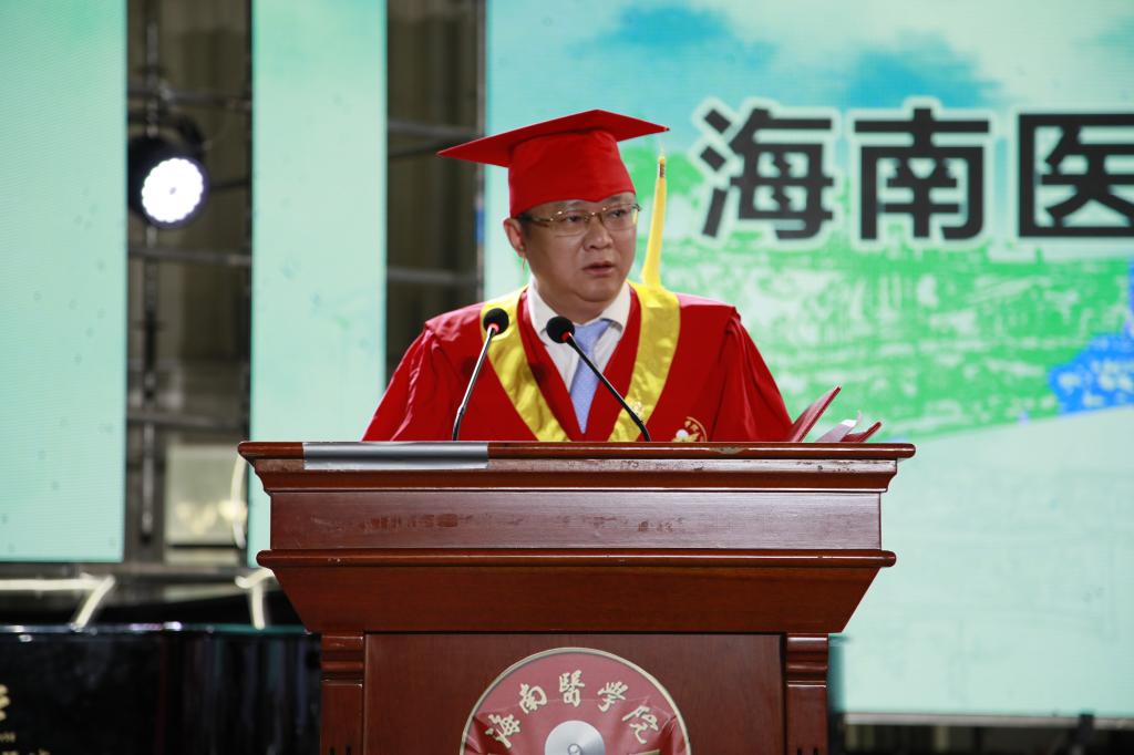 杨俊校长在讲话中指出,正值世界百年未有之大变局和中华民族伟大复兴关键时期,与时代同行、与学校共进,亲历并见证了中华人民共和国70周年大庆;共同迎接中国共产党建党100周年;亲历并见证了2020年全国人民上下一心、共克时艰的伟大抗“疫”历程;亲历并见证了习近平总书记亲自宣布建设海南自贸区和自贸港,学校成功获批博士学位授予单位,实建成本科、硕士、博士完整的医学人才培养体系,看到母校在向热带特色鲜明的高水平医科大学阔步迈进,并与其成长的毕业生是幸运的。