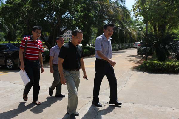 汇报会前,在谢江波副书记、王身坚部长的陪同下,麦浪、黄琼雄、文强等领导一行参观考察了我校校园环境。