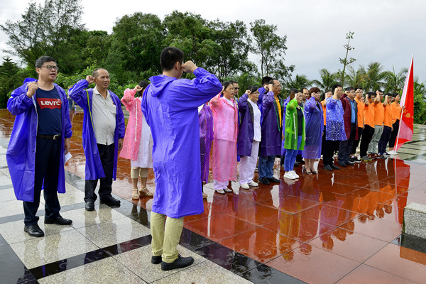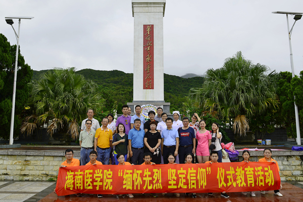 在开展义诊活动前,党员专家与“三下乡”的教师和同学们一起就近在六岭岭烈士陵园开展敬献花圈、缅怀先烈、重温入党誓词系列活动。