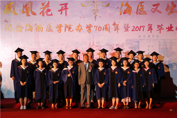 杨俊院长在致辞中说,今年是我们海医办学七十周年,七十年的风雨使我们学校不断地发展壮大,这背后有着无数教职工默默地付出。凤凰花开,海医又出发。这是海医的节日,也是所有海医人的节日。向我校本专毕业生、成教毕业生、以及第一届毕业的46名研究生表示衷心的祝贺!