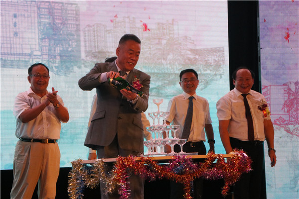 吕传柱书记与来宾点亮海医之夜,移步香槟塔,共举杯,同欢聚