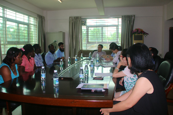 6月13日上午,由海南省教育厅国际处张超处长带队,省外事办、省公安厅、海口市公安局等单位的相关部门负责人组成的调研组一行14人来我校开展2017年国际学生教育工作专项调研。调研座谈会在行政楼第一会议室举行。我校黄元华副院长,院长办公室、国际教育学院、党委宣传部、教务处、学生工作处、保卫处、后勤管理中心等相关职能部门负责人,以及国际教育学院老师、管理干部代表参加座谈会。