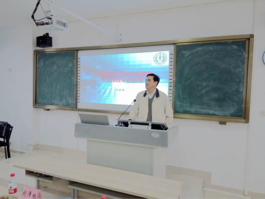 牟忠林院长讲述“智慧医疗与健康大数据在卫生领域中的应用”,并作“以实践教学为抓手,突出海医管理医学特色”的报告